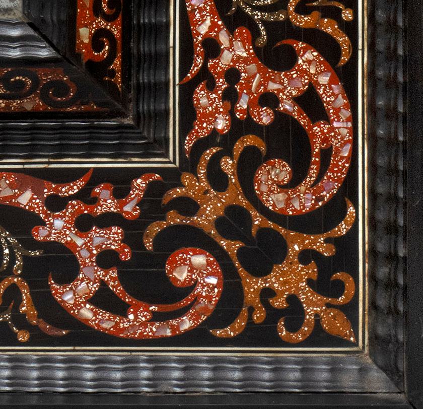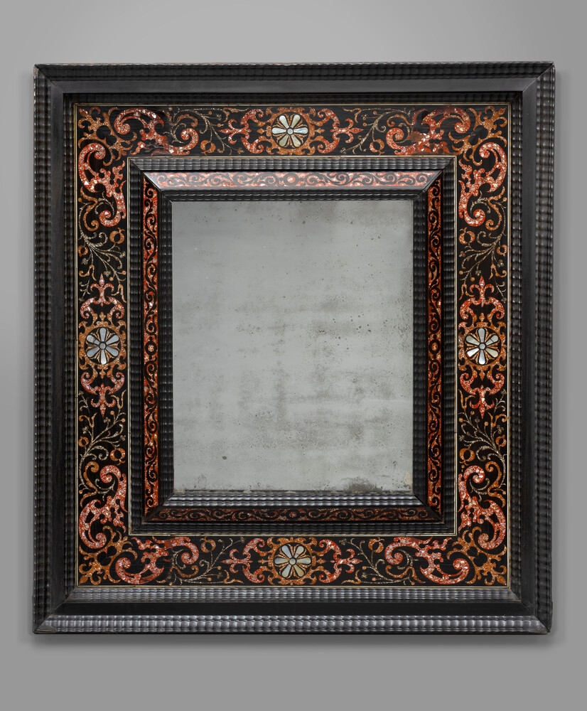 A large south netherlandish (Antwerp or Brussels) ebony with inlaid lacquer mirror.