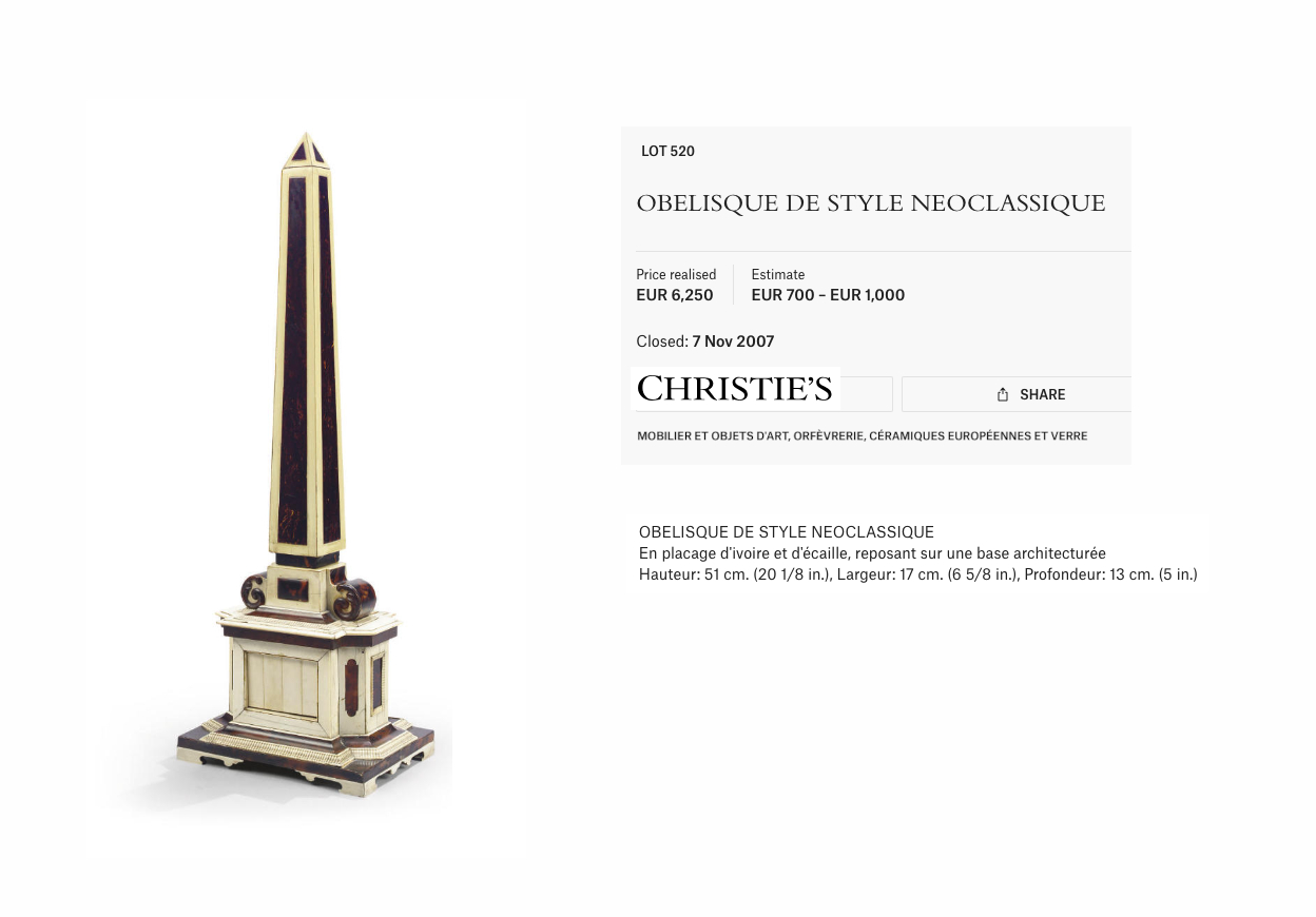- Christie’s Paris, 7 November 2007, Lot 520.