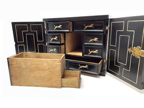 Baumgartner was noted for his luxury boxes and cabinets, especially the Augsburg cabinets, which were highly decorative pieces of furniture used to store precious objects. These pieces were commissioned by the nobility and gentry and were characterized by a combination of ebony, ivory or tortoiseshell inlay, semi-precious stones and exotic woods. Stylistically they were inspired by Flemish and Italian early Baroque furniture. His workshop in Augsburg, a key city in the production of decorative arts in the 17th century, was highly influential. His cabinets became status symbols and some of his pieces are preserved in museums and private collections. The Pomeranian Desk is one of Ulrich Baumgartner's most iconic works, created around 1617-1620 in Augsburg, Germany. It is a masterpiece of Baroque furniture art and an extraordinary example of the luxury cabinetmaking of the period. It is a large, richly decorated cabinet that combines desk functions and storage space. It was designed to be a showpiece, intended for the nobility. The piece of furniture was commissioned by Philip II of Pomerania, Duke of Stettin, as a symbol of his power and cultural refinement. Today, the Pomeranian Desk is housed in the Kunstgewerbemuseum in Berlin, where it is considered one of the museum's most valuable pieces.